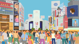 繁華街でよく見かける、建物の外壁に突き出して設置されている広告板。