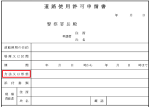 道路使用許可道路使用許可申請書の「方法又は形態」について、今回はお伝えします。